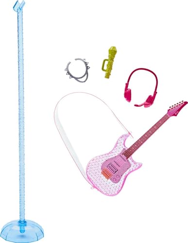 - عندما يرفع الأطفال ميكروفون دمية باربي إلى فمها، ستشغل الموسيقى فستانها وستغني مع إحدى أغنيتين أصليتين!