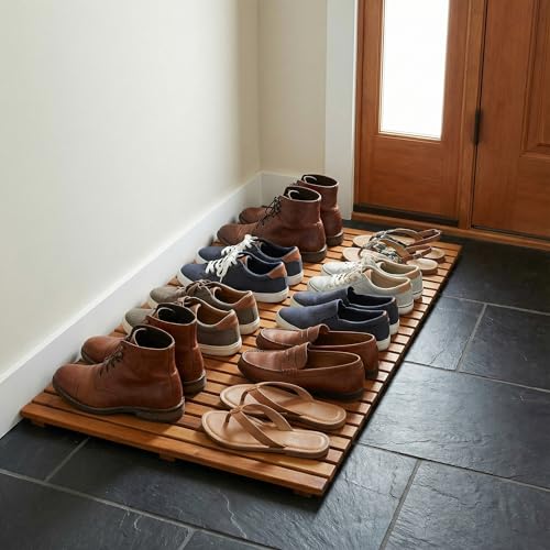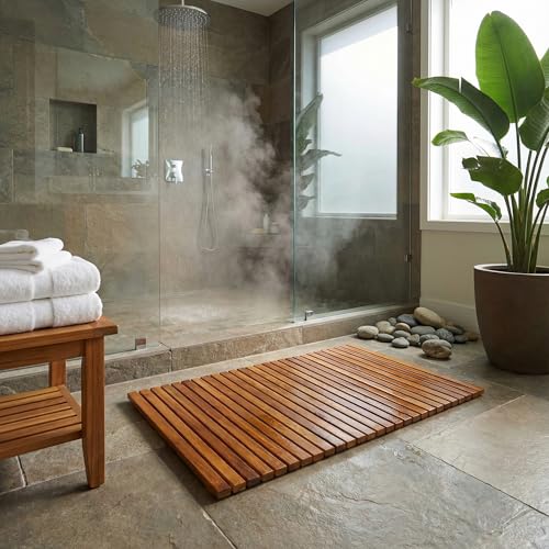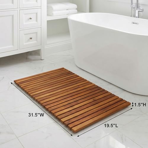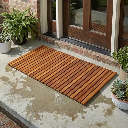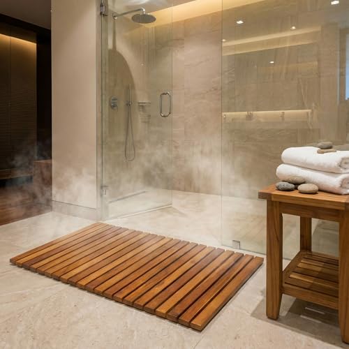 Bare Decor - دواسة باب نوري لديكور الحمام والمنتجعات الصحية مصنوعة من خشب الساج الصلب من بير، 80 سم × 49.5 سم، بني