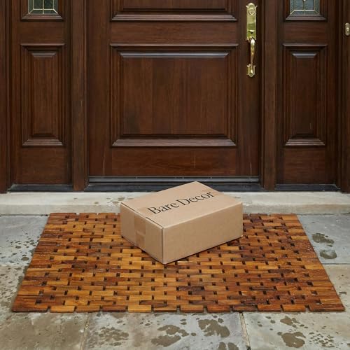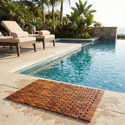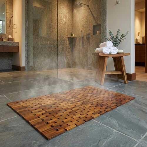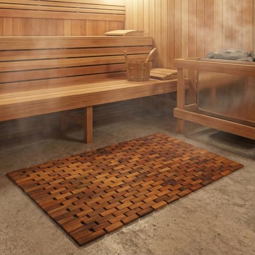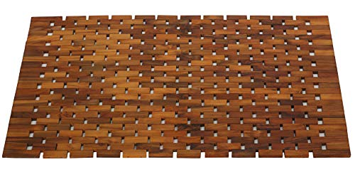 Bare Decor - دواسة بانيو بتصميم موزاييك من خشب الساج الصلب للسبا من بير ديكور، بني، 76 سم × 51 سم
