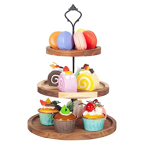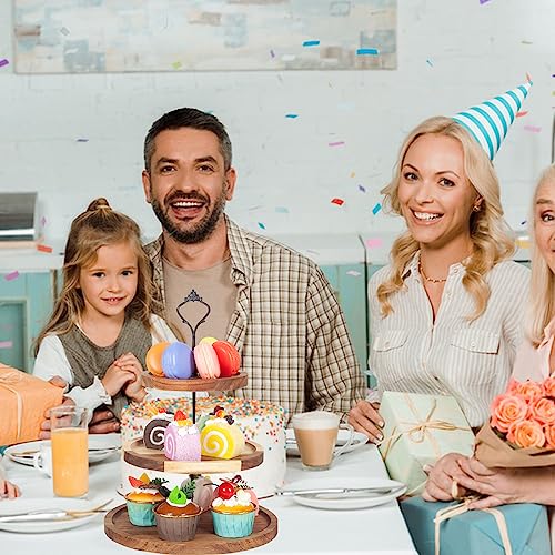 Barelove - حامل كب كيك خشبي من 3 طبقات من باريلوف، صينية تقديم متعددة الطبقات، طبق حلويات ومعجنات وحلوى على شكل برج لحفلات الزفاف وأعياد الميلاد وحفلات الشاي وديكور استقبال المولود (دائري، خشب)