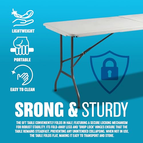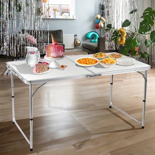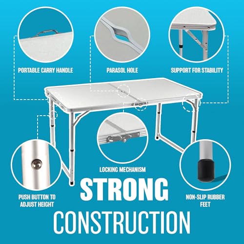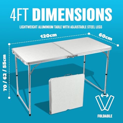 BARGAINS-GALORE - طاولة قابلة للطي شديدة التحمل من الألومنيوم بارجينسجالور بطول 1.1 متر-1.8 متر للتخييم والحديقة والحفلات والنزهات وحفلات الشواء والفناء جودة قوية أبيض 4