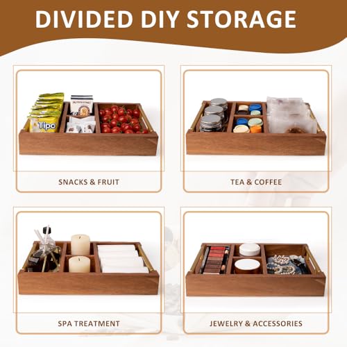 BARGIFTS - منظم ركن القهوة مزود بمقبض، منظم اكسسوارات بار خشبية بأربعة أقسام لسطح الطاولة، سلة لحمل كبسولات للسكر والشاي والزجاجات، من بير جيفتس لون بني