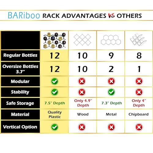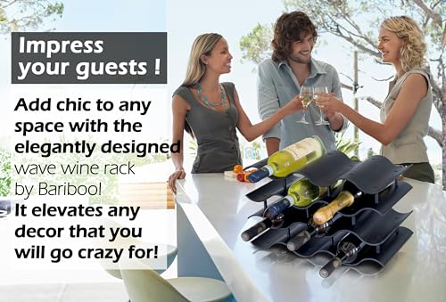 Bariboo - حامل زجاجات لرف النبيذ من الخيزران حامل زجاجة نبيذ قابل للتكديس. منظم حامل مشروبات مكون من 12 زجاجة لسطح الطاولة وخزانة المؤن والثلاجة. لوح نبيذ بلاستيكي عالي الجودة وخفيف الوزن للتخزين (اسود صديق