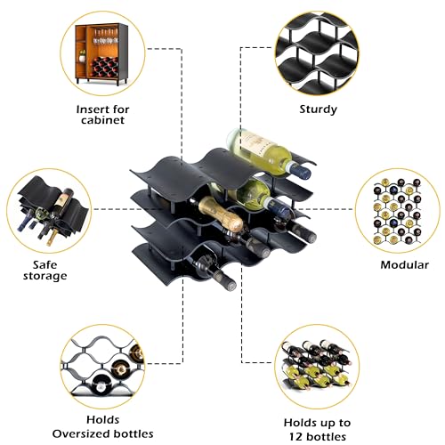 - حجم مثالي - تم تصميم نظام رف المشروبات المموج القائم بذاته لتكديس ما يصل إلى 12 زجاجة نبيذ (أو زجاجات مياه) في كل مرة.