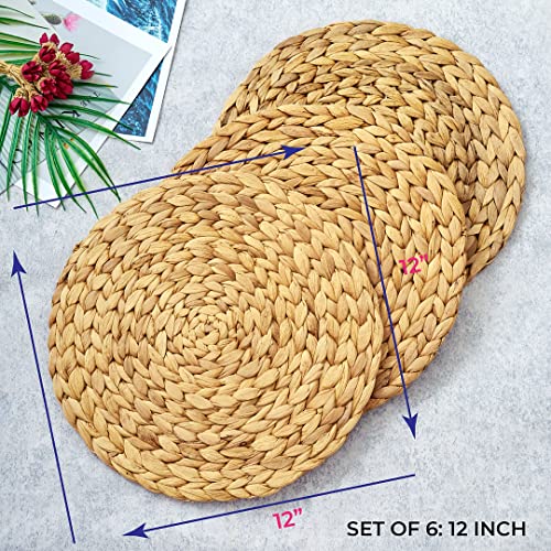 BARIEN - باريين مجموعة مفارش دائرية منسوجة مقاس 12 انش مكونة من 6 قطع، مفارش منسوجة من الياقوتية المائية الطبيعية لطاولة الطعام، مفارش كبيرة منسوجة يدويا ومقاومة للحرارة وغير قابلة للانزلاق