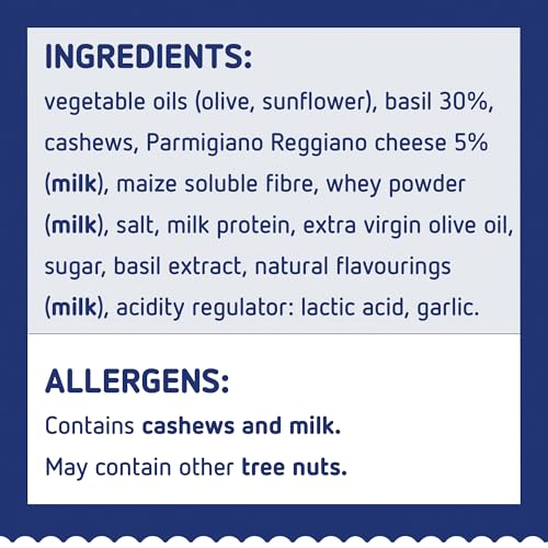 - المميزات: مصنوعة من الريحان الطازج والجبن الإيطالي الأصلي (بيكورينو رومانو وجبن غرانا بادانو). مناسبة للمستخدمين النباتيين والباحثين عن منتجات خالية من الجلوتين. اعدي وجبات مكرونة لذيذة: تتناسب جيدًا مع أي نوع من أنواع المكرونة لتحضير وجبة إيطالية أصيلة لك ولعائلتك.