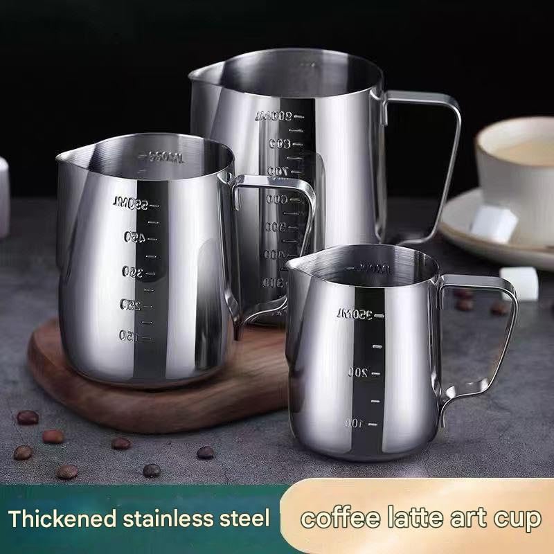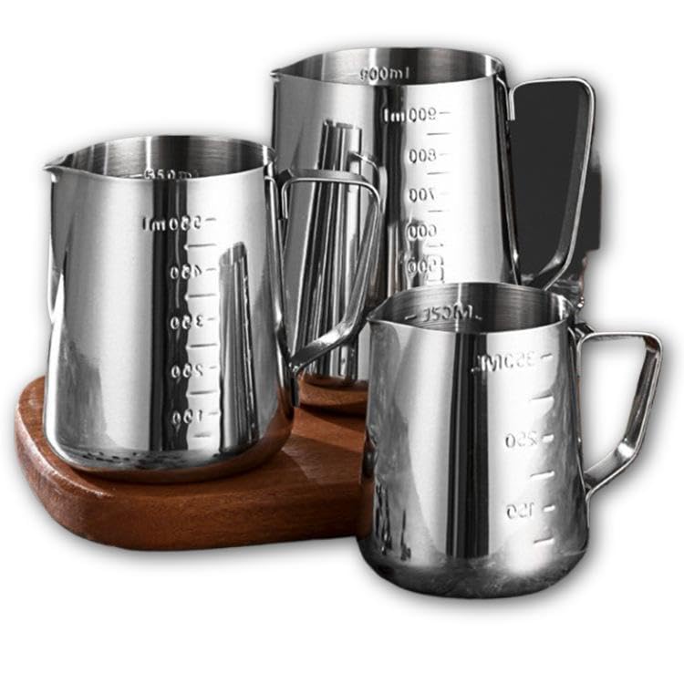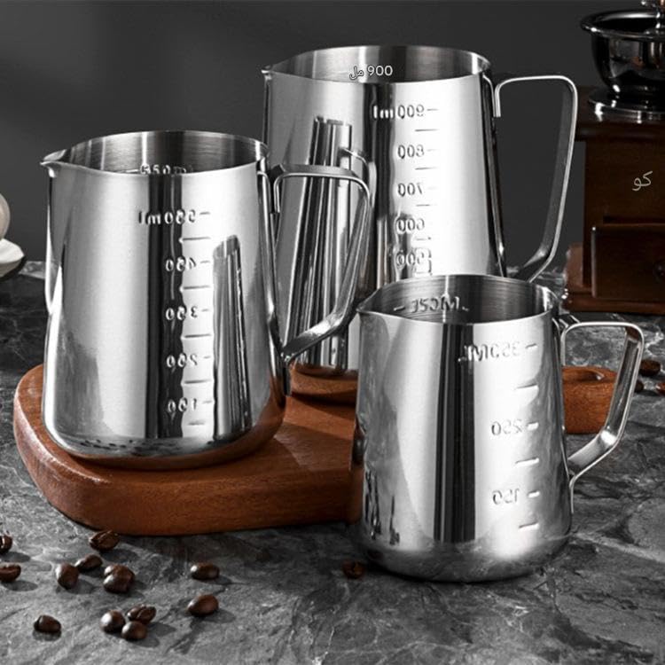 Generic - ابريق باريستا - ستانلس ستيل مصقول بمقبض سميك ومقياس قياس، تصميم منحني ناعم، ممتاز للمقاهي والمطاعم والحانات (350 و550 و900 مل)