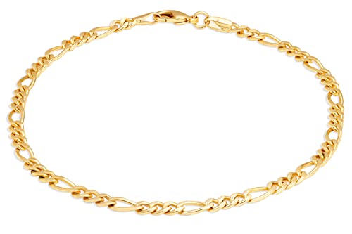 Barzel - خلخال فيجارو للنساء من بارزيل مطلي بالذهب عيار 18 قيراط بمقاس 4.5 ملم - صنع في البرازيل, 10 Inches, بدون أحجار كريمة