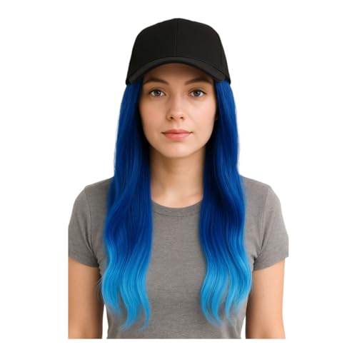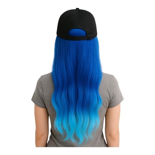 Generic - باروكة بطاقية بيسبوبل للنساء والبنات، وصلات شعر مستعار طويل مموج طبيعي مع طاقية من ألياف صناعية مقاومة للحرارة قابلة للتعديل، (لون أزرق ولبنى )