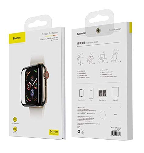 Baseus - باسيوس شاشة حماية من الزجاج المقوى بتغطية كاملة مقاس 0.3 ملم لساعة اي ووتش 4 40 مقاومة للخدش بدرجة صلابة 9 شفاف