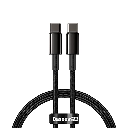 Baseus - كابل طاقة 100 واط USB C الى نوع شحن سريع ونقل البيانات كيبل تنجستين ذهبي مغطى بالنايلون لاجهزة ماك بوك وايباد برو واير وشاومي وسامسونج 1 متر اسود من باسيوس