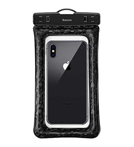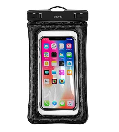 Baseus - باسيوس حافظة حماية مقاومة للماء بدرجة IPX8 10 ام ماكس للهاتف المحمول بوسادة هوائية لهاتف ايفون اكس 8 بلس جالكسي اس 9 اقل من 6 انش، اسود، سيليكون