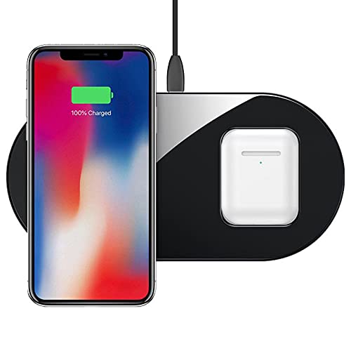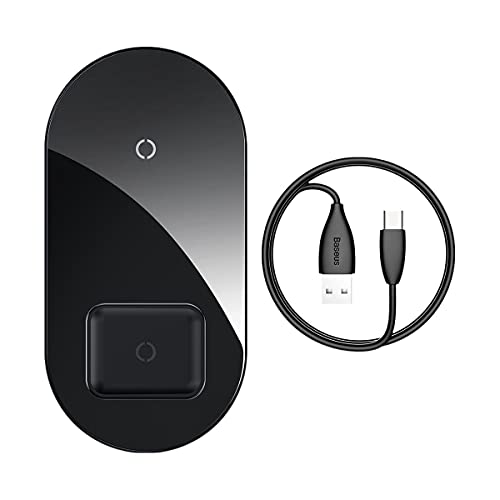 Baseus - باسيوس شاحن لاسلكي بسيط 2 في 1 لاجهزة ايفون وسامسونج وايربودز (15 وات كحد اقصى) - اسود