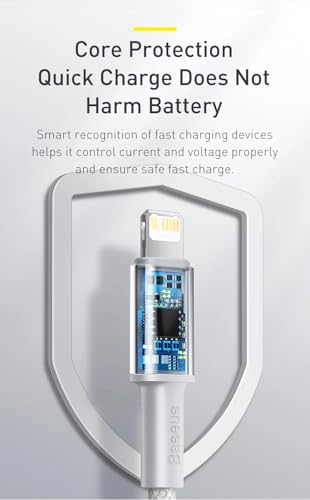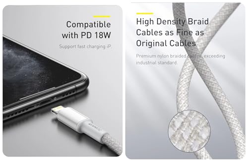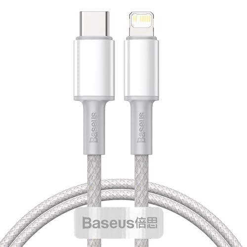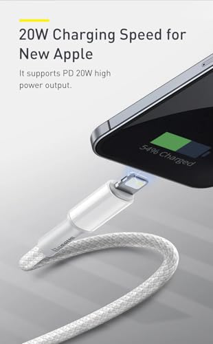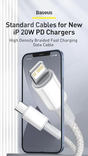 Baseus - كابل شحن سريع مضفر عالي الكثافة 20 وات من USB نوع سي إلى لايتنينج لنقل البيانات 480 ميجابايت في الثانية لآبل آيفون 14 برو ماكس،13،12،11،اكس اس،اكس ار،اكس،8 بلس،7،6S واي باد من باسيوس، 2 متر (أبيض)