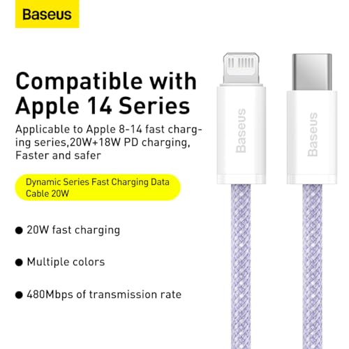 Baseus - كيبل باسيوس انيرجيتيك مضفر ديناميكي 20 وات USB نوع C - لايتنينج معتمد من ام اف اي للشحن السريع لابل ايفون 14 برو ماكس/ 13/12/11/ اكس اس/ ار/ 8 بلس/ اس اي/ 7/ 6 بلس أرجواني