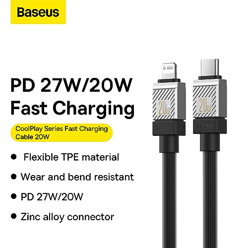 Baseus - كابل شحن سريع 20 وات USB نوع C إلى لايتنينج بطول 2 م لجهاز آبل آيفون 14 برو ماكس و13 و12 و11 وX وXS ماكس، كابل نقل بيانات 480Mbps وسلك شاحن نوع C بوصلة من خليط معدني من الزنك من باسيوس، أسود