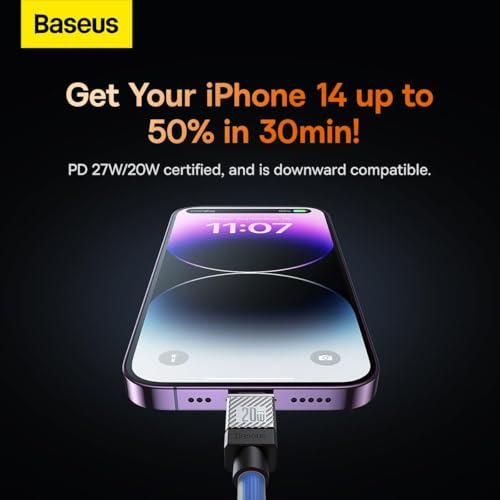 Baseus - كابل شحن سريع 20 وات USB نوع سي إلى لايتنينج بطول 2 متر لجهاز آبل آيفون 14 برو ماكس و13 و12 و11 وX وXS ماكس، كابل نقل بيانات 480 ميجابت في الثانية بوصلة من خليط معدني من الزنك من باسيوس، أزرق