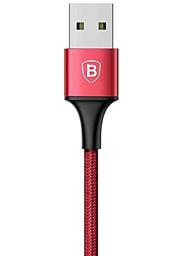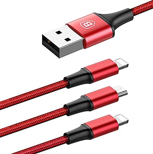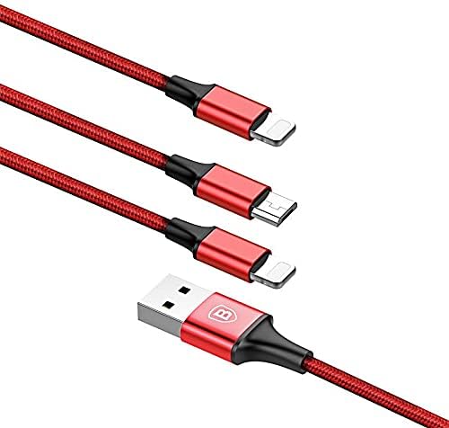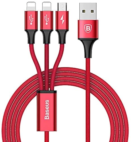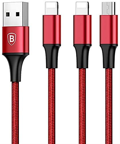 Baseus - باسيوس كابل 3 في 1 مع 3 مخارج ( لايتننج - لايتننج - مايكرو ) لجميع أجهزة ايباد ميني 7.9 انش / ايباد اير 9.7 انش / ايباد برو 10.2 انش / 10.5 انش / 10.9 انش شحن سريع 3 امبير - 1.2 متر - أحمر