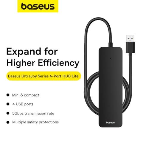 Baseus - باسيوس موزع USB 4 في 1 الترا جوي لايت من USB-A الى USB 3.0، طول 1 متر، أسود