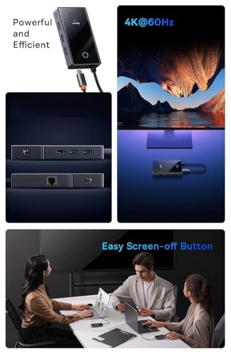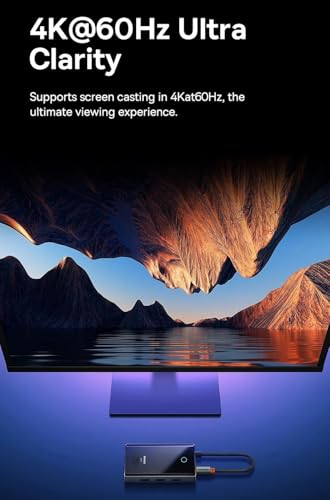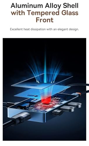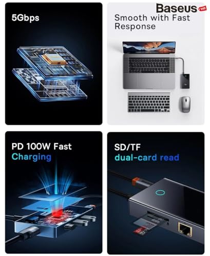 Baseus - قاعدة شحن بيونير جوي بـ 6 منافذ USB نوع سي بمنفذ HDMI 4K عند 60Hz وشحن PD 100W و3 منافذ USB 3.0 بسرعة 5 Gbps وايثرنت RJ45 بتصميم صغير لأجهزة آبل ماك بوك وسيرفس برو واي باد واللاب توب من باسيوس