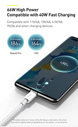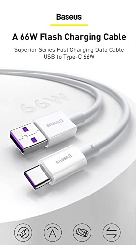 Baseus - كابل USB النوع C سلسلة سوبريور 66 وات من بايسوس لموبايل سامسونج جالاكسي S22 الترا - S21 - S20 - نوت 10 بلس - 9 - S10+ - 1 متر - لون ابيض