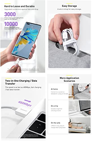 • ⚡هذا الكابل العملي لا يتيح لك الشحن بسرعة فحسب، بل يتيح لك أيضًا نقل الملفات في وقت قصير. سرعة نقل تصل إلى 480 ميجابايت/ثانية ستلبي توقعاتك بالتأكيد. يمكن نسخ فيلم بسعة 1 جيجابايت في 24 ثانية فقط! مع الكابل يمكنك شحن هاتفك ونقل البيانات في نفس الوقت.