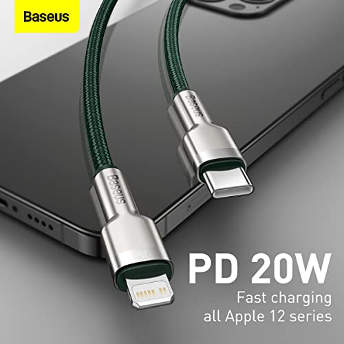Baseus - كابل بيانات معدن للشحن السريع نوع سي الى iP PD من سلسلة كافولي من باسيوس، توصيل الطاقة 20 وات، 2 متر، أبيض