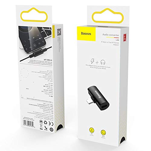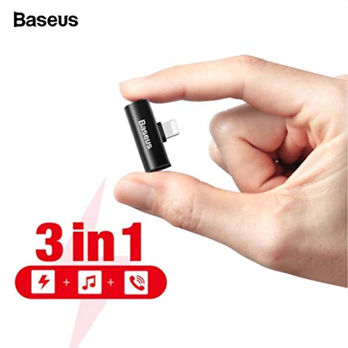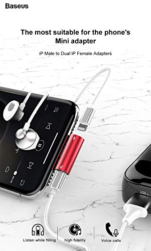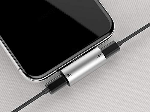 Baseus - محول من باسيوس الي مخرجين لايتننج للشحن والأستماع معا لجميع اجهزة ابل ايفون iPhone X / Xs / XR شحن سريع - فضي