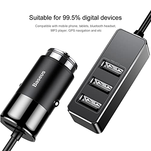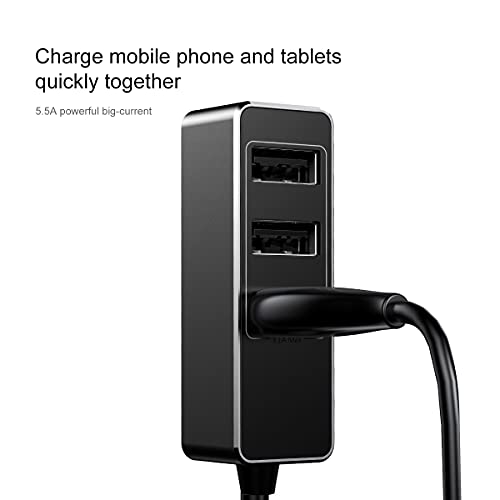 Baseus - شاحن سيارة باتوليوس باربعة واجهات 5.5 امبير تعمل معا من باسيوس، USB، أسود