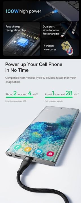- ⚡ اشحن جهازين في وقت واحد مع مخرج شحن لا مثيل له: يدعم كابل يو اس بي سي إلى يو اس بي نوع سي بي دي 3.0 مع خرج طاقة يحطم الرقم القياسي يصل إلى 100 واط، مما يؤدي إلى ترقية لعبة الشحن الخاصة بك. متوافق مع الإصدارات السابقة مع مخرج 100 واط/60 واط/40 واط/20 واط مما يجعله متعدد الاستخدامات، مما يسمح لك بشحن أي جهاز تملكه بسرعة