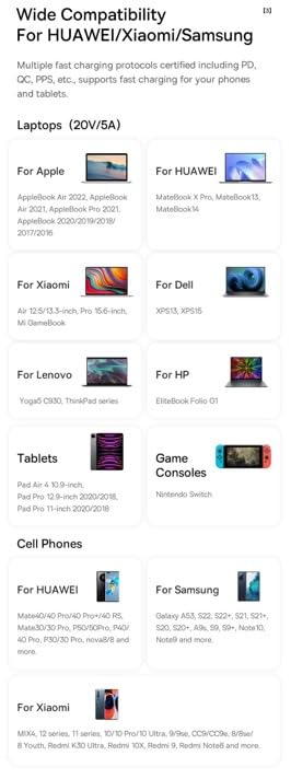 - ⚡ بروتوكول PD3.0 مع سرعة تقنية كيو سي 3.0 ويدعم التيار العالي 20 فولت/5 امبير، ويمكنه شحن الهواتف المحمولة وأجهزة التابلت واللاب توب بسرعة