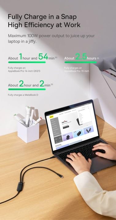 - ⚡ شاحن فائق السرعة (آمن)) - الطاقة: 100 واط (20 فولت/5 امبير) ومتوافق مع مخرج 100 واط/60 واط/40 واط/20 واط