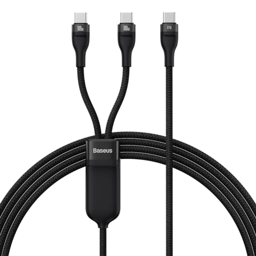 Baseus - كابل فائق السرعة بطول 1.5 متر وقدرة 100 وات بمنفذين USB نوع سي PD3.0 QC3.0 لموبايل سامسونج جالاكسي S24 الترا وS23 ونوت 20 وهواوي واوبو وشاومي وابل وجميع أنواع أجهزة بمنفذ من باسيوس