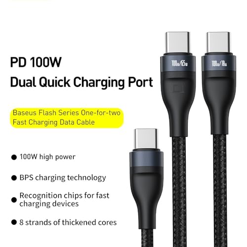 Baseus - كابل بيانات للشحن السريع واحد لشحن جهازين من سلسلة فلاش نوع سي إلى مع 100 وات باسيوس 1.5 متر لمكبر صوت