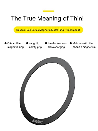 Baseus - حلقة معدنية مغناطيسية من سلسلة هالو من باسيوس (قطعتان / عبوة) بلون اسود