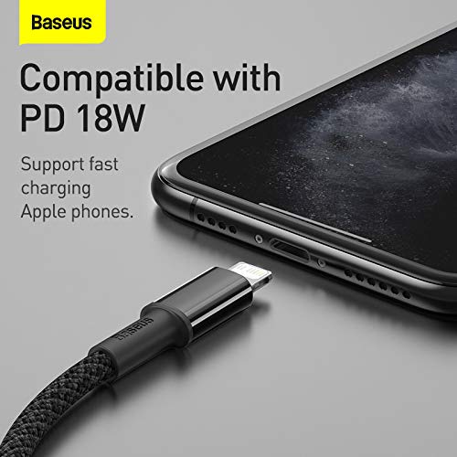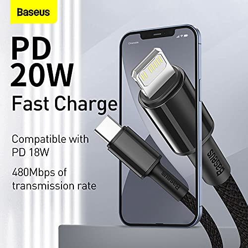 Baseus - كابل نقل بيانات مضفر عالي الكثافة للشحن السريع من باسيوس النوع سي الى جهاز ايفون وايباد بقدرة 20 واط 2 متر