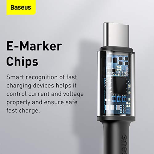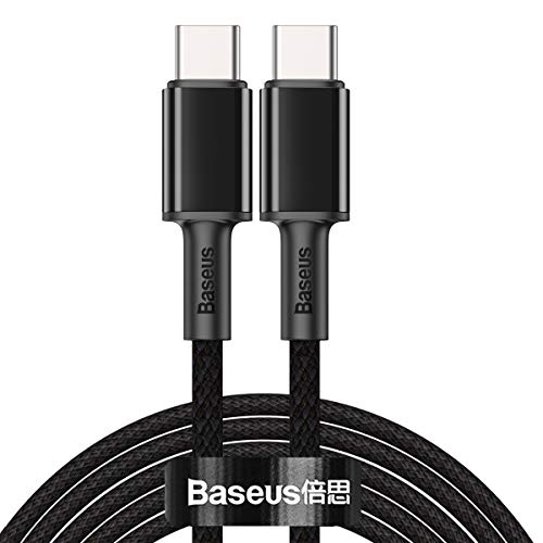 Baseus - كابل نقل بيانات وشحن سريع مضفر شديد الكثافة بطرف من النوع سي الى طرف بقدرة 100 وات وطول 2 متر باسيوس لالهاتف الذكي أسود لهاتف ذكي
