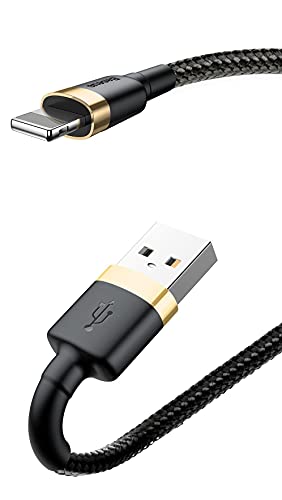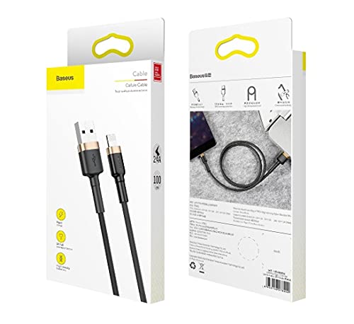 Baseus - كابل باسيوس iOS كافولي بسلك نايلون متين مضفر USB لايتنينج بتقنية الشحن السريع QC3.0 2.4 أمبير 1 متر لاجهزة ابل ايفون، اسود وذهبي
