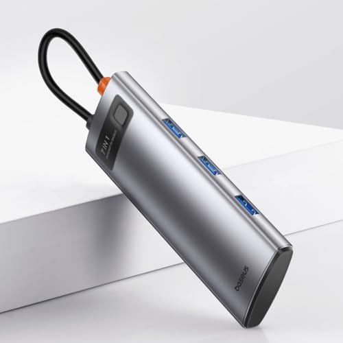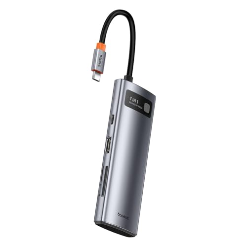 Baseus - موزع متعدد المنافذ 7 في 1 من سلسلة ميتال جليم باسيوس USB- النوع سي الى HDMI 4K رمادي