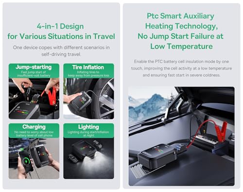 - ✅ مصمم بشاشة عرض مدمجة تُطلعك على مستوى شحن بطارية الجهاز المساعد جامب ستارتر لتشغيل السيارة هذا.