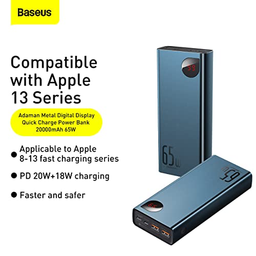 Baseus - باور بانك ديجيتال 20 000 مللي امبير في الساعة من باسيوس لاجهزة ابل ماك بوك اير وماك برو بخاصية الشحن السريع PD 65 وات ومنفذ USB-C - ازرق الليثيوم