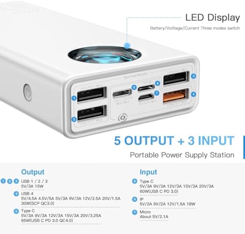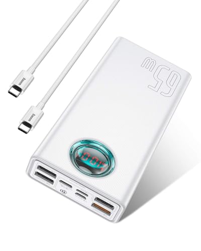 Baseus - شاحن باور بانك بشاشة رقمية امبليت، C+U+U+U+U، (مع كابل شاوباي نوع سي الى نوع سي 100 وات (20 فولت/5 أمبير) 1 متر) 65 وات، 30000 من باسيوس
