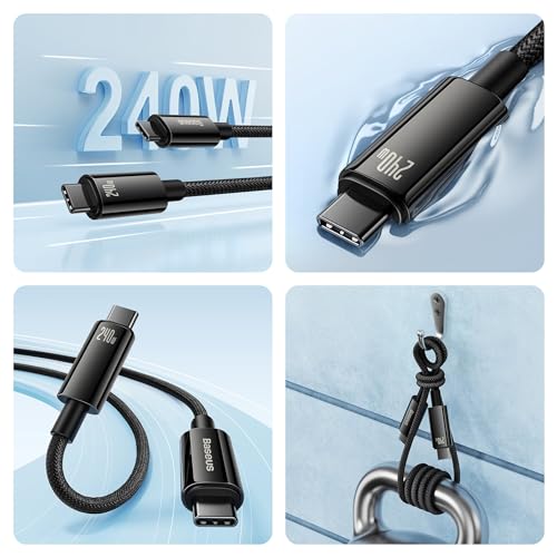Baseus - كابل قوي فائق السرعة بقدرة 240 وات للشحن السريع من USB-C الى PD3.1 كيو سي 4.0 بيسيوس لاجهزة ابل ماك بوك ومايكروسوفت سيرفس برو وديل واسوس وزين وايباد وسامسونج وهواوي 2 متر
