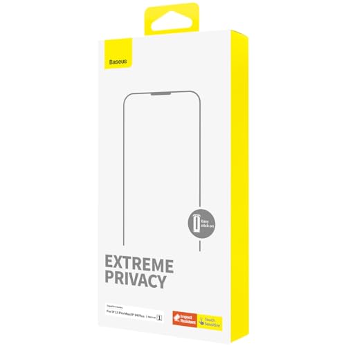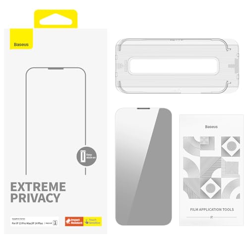 Baseus - شاشة حماية من الزجاج المقوى لحماية الخصوصية مع فلتر ضد الغبار لموبايل آيفون 13 برو ماكس - 14 بلس باسيوس شفاف
