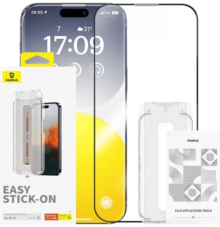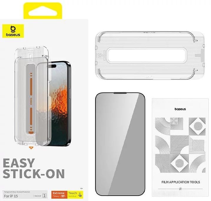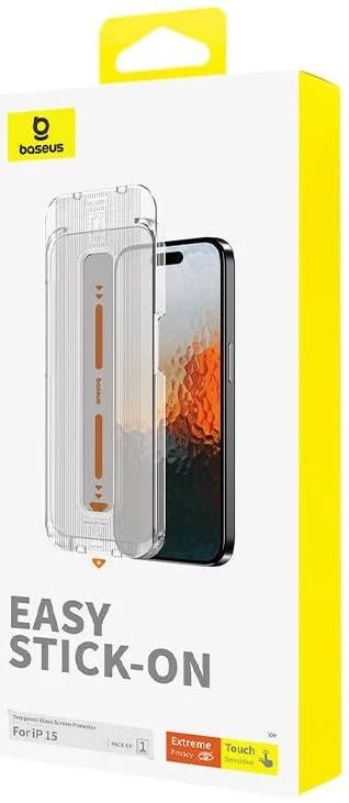 Baseus - شاشة حماية للخصوصية من الزجاج المقوى لموبايل ايفون 15 سلسلة سافير باسوس شفاف
