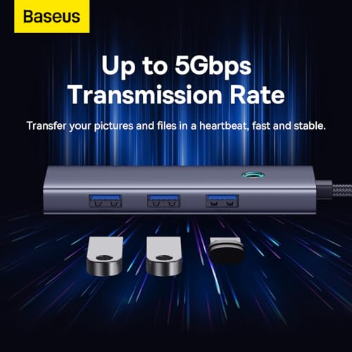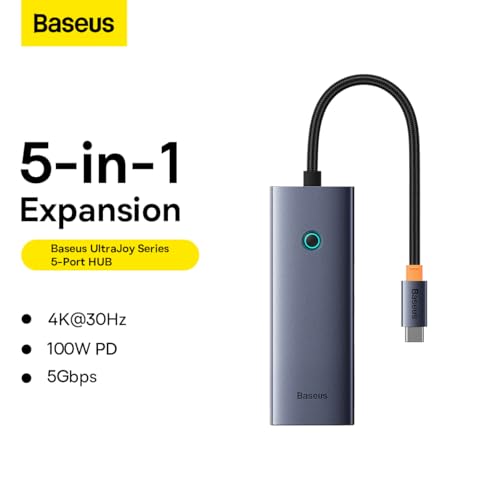 Baseus - موزع متعدد المنافذ 5 في 1 من سلسلة الترا جوي من باسيوس، USB من النوع سي إلى HDMI 4K، رمادي