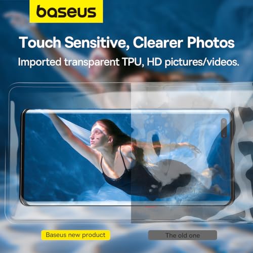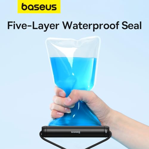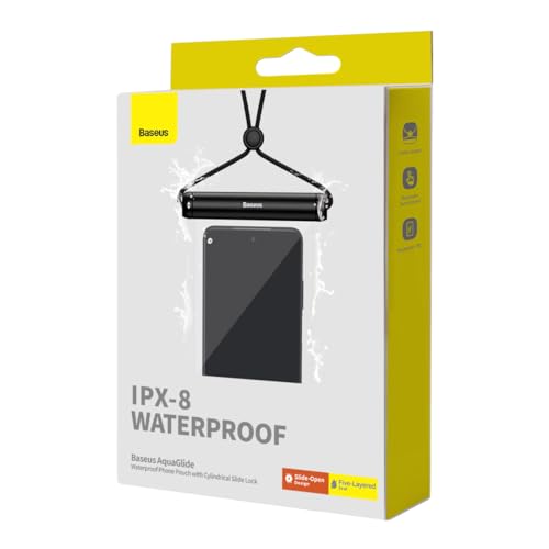Baseus - جراب موبايل مقاوم اكوا جلايد من باسيوس، مقاوم للماء بدرجة IPX8 مع شريط للرقبة والمعصم لموبايل ايفون 15 14 13 12 برو ماكس وسامسونج جالكسي اس 24 الترا والموبايلات الذكية حتى 7.2 بوصة (أسود)