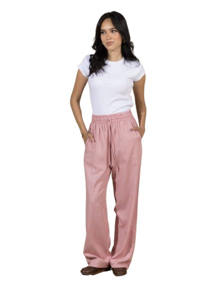 BASIC TWIST - بنطلون كتان بارجل واسعة للنساء من بيسيك تويست
