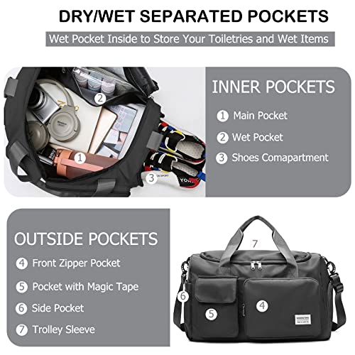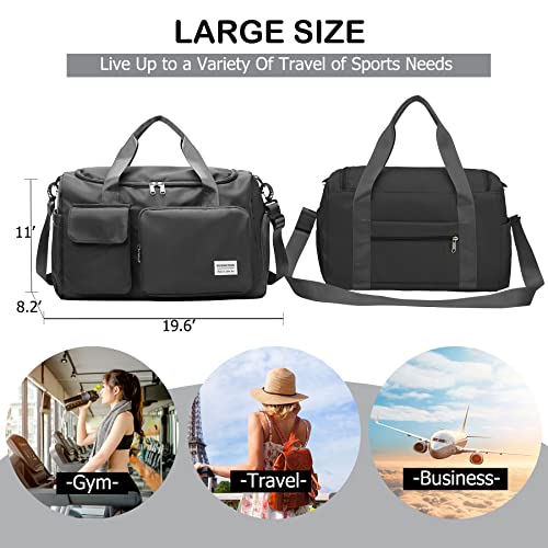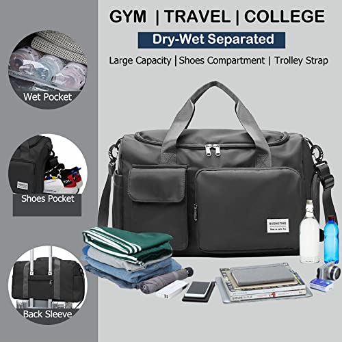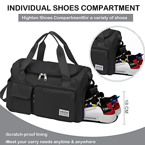 BASICPOWER - القوة الاساسية شنطة دفل رياضية للسفر وصالة الالعاب الرياضية، شنطة خفيفة الوزن مقاومة للماء لعطلة نهاية الاسبوع مع جيب للحذاء، حافظة امتعة وجيب مبلل، للنساء والرجال، اسود، نايلون قماش