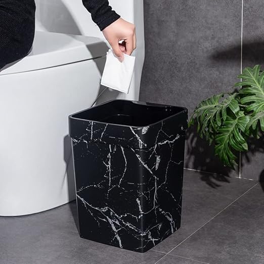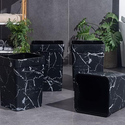 - سلة مهملات للمطبخ، حاوية قمامة بنمط رخامي للحمام، سلة مهملات بلاستيكية لتخزين المناديل وورق النفايات والتقشير والفتات وغيرها من القمامة الصغيرة.
